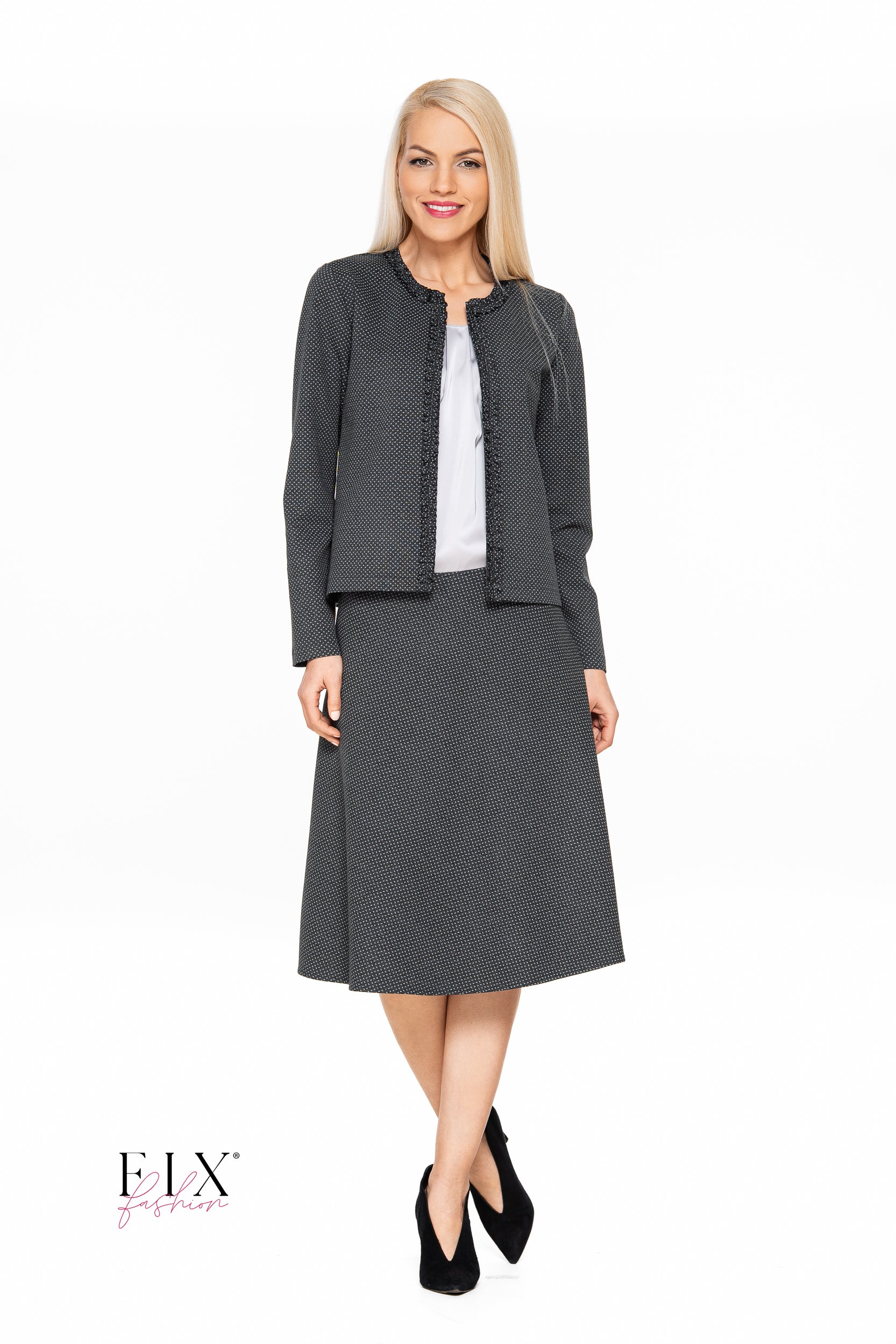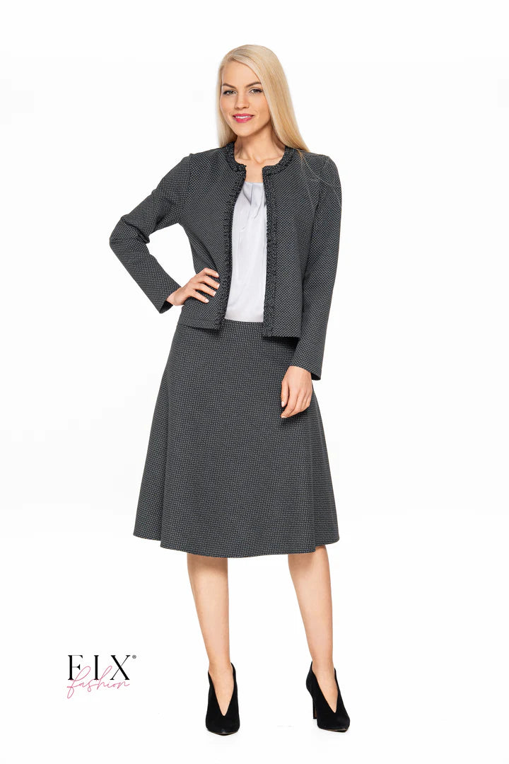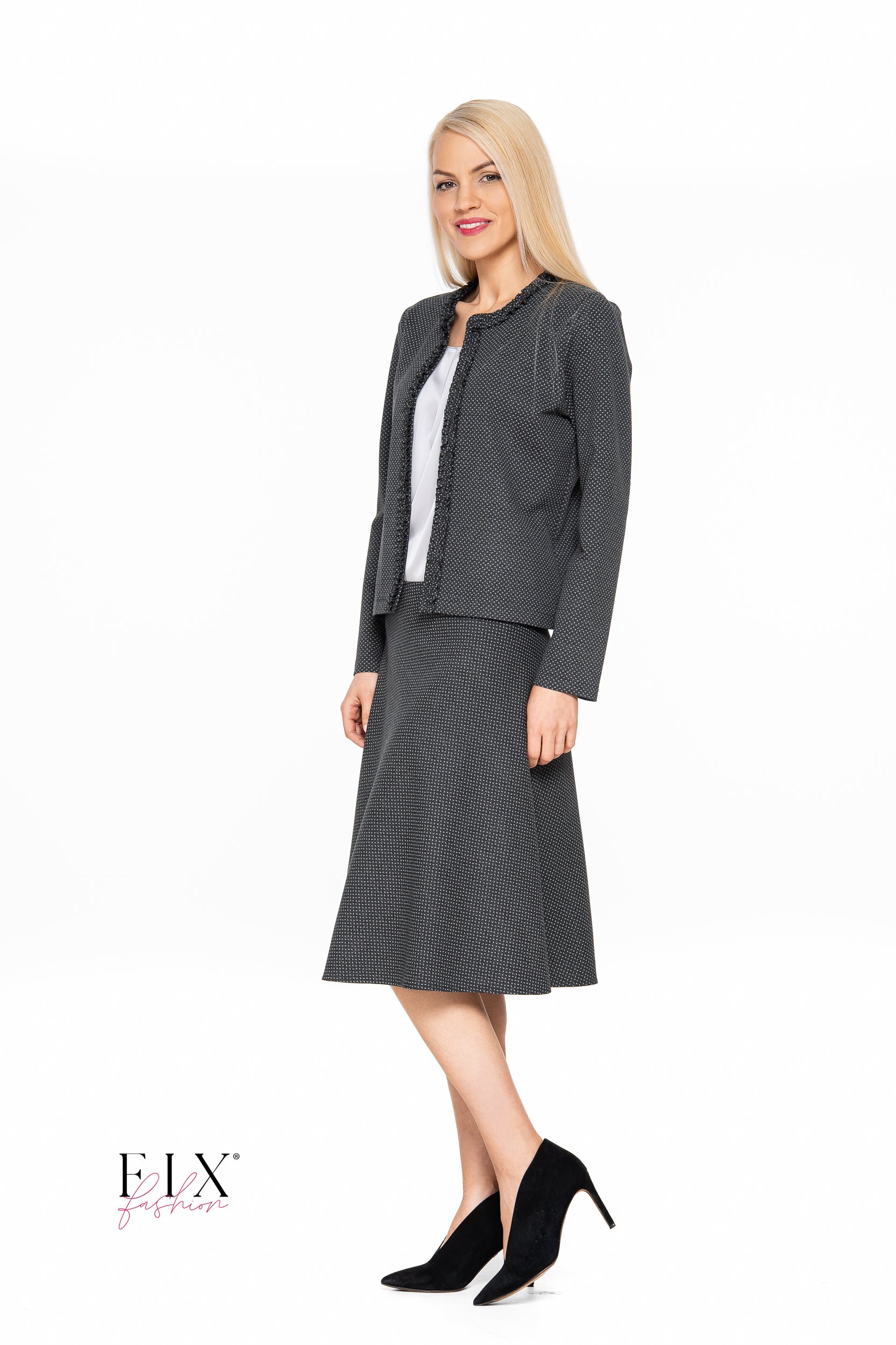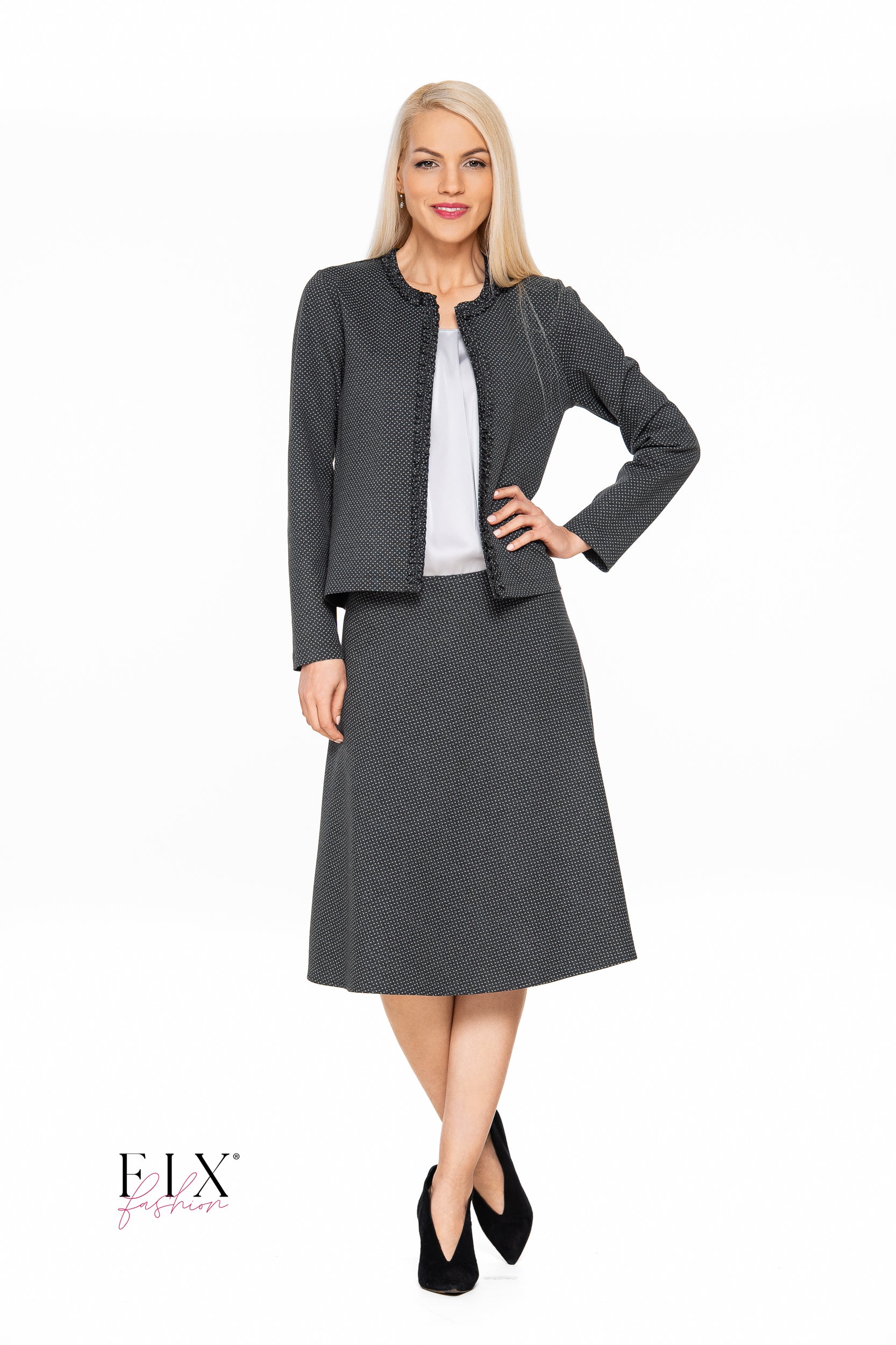 Un compleu deosebit, realizat din jerse calitate premium. Foarte practic si usor de intretinut! Fusta este captusita.
