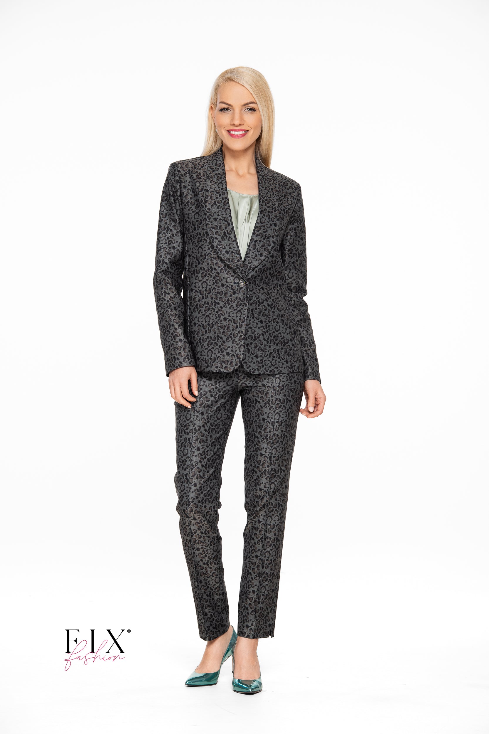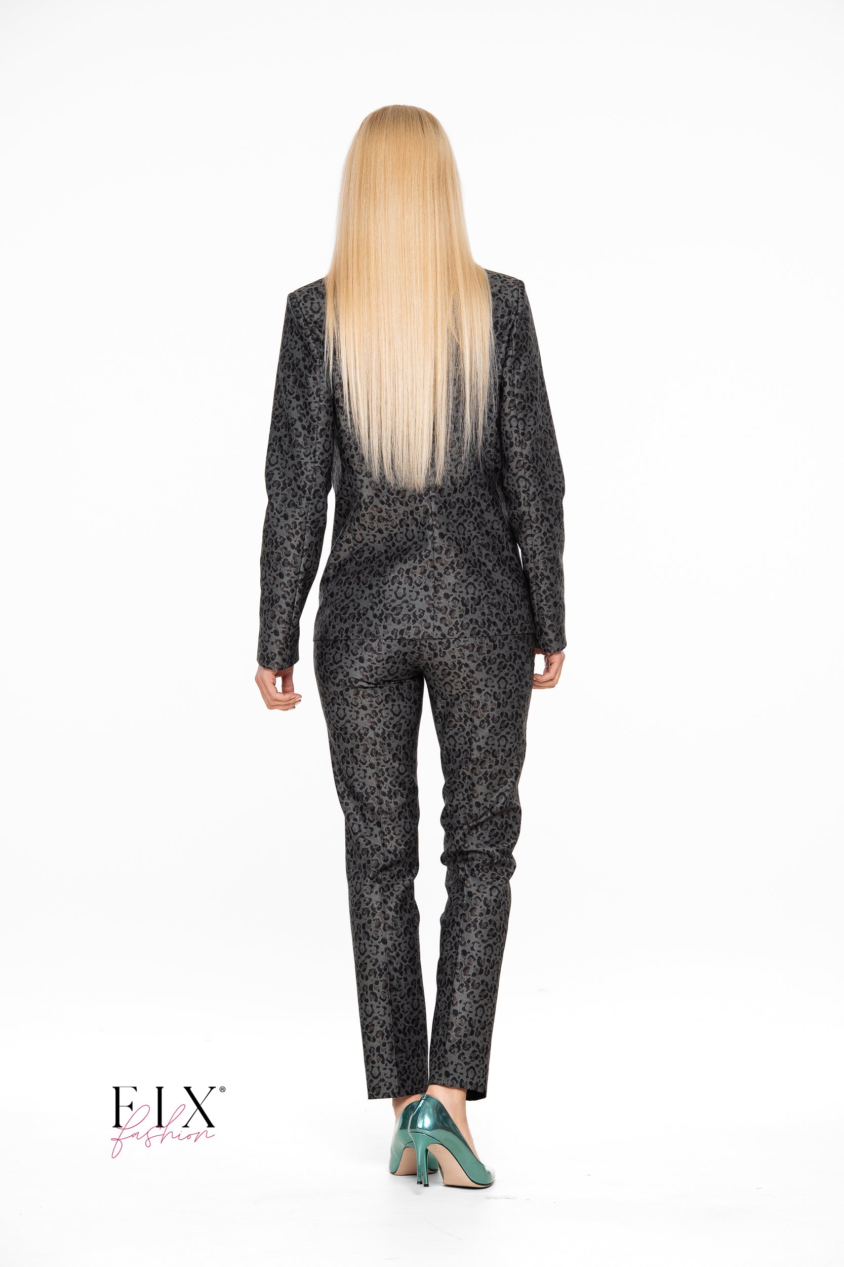 Un compleu deosebit, calitate premium! Realizat din stofa usor elastica cu imprimeu marunt animal print. Sacoul este captusit.