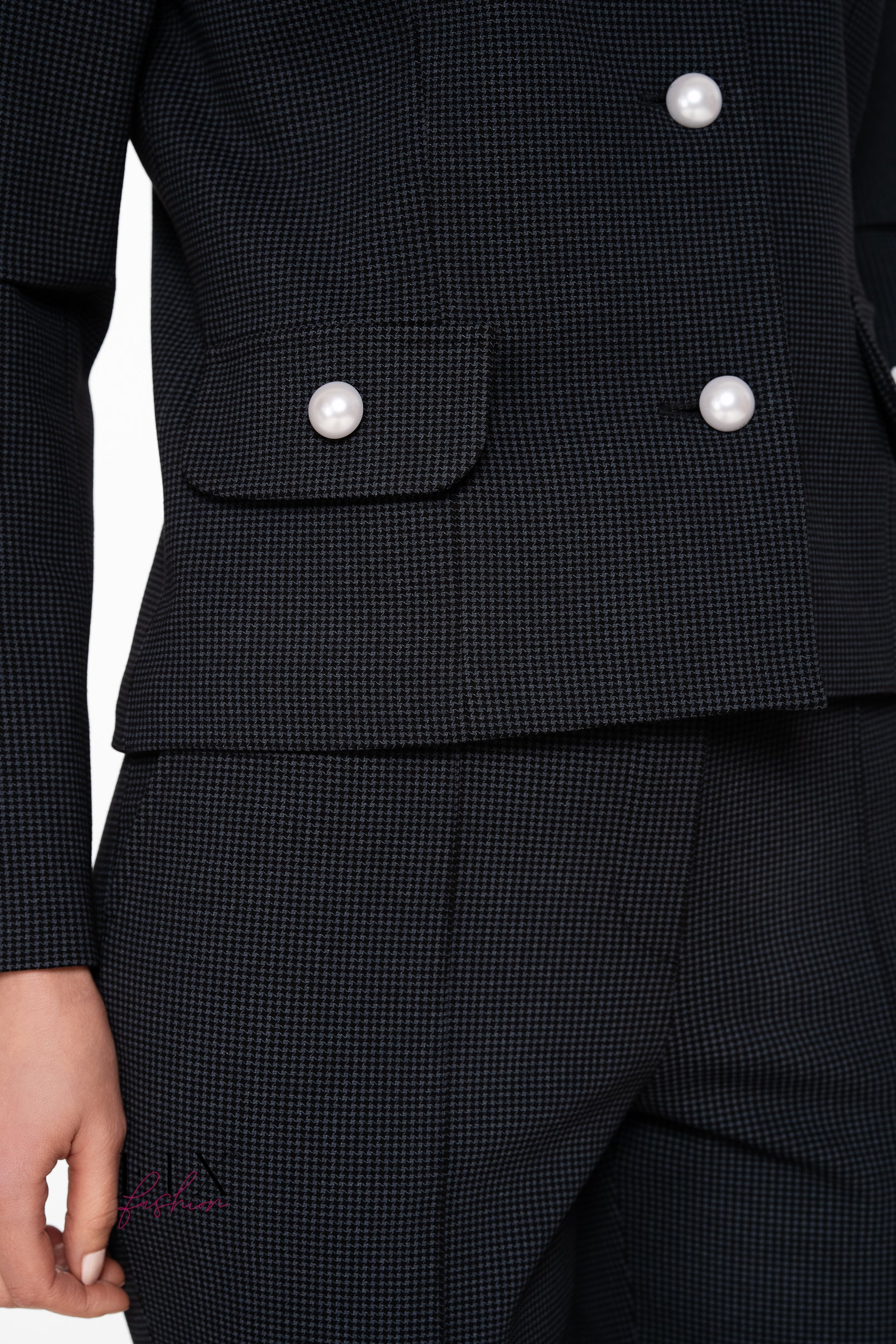 Un compleu deosebit, compus din sacou tip Chanel ( captusit) si pantalon conic cu buzunare si fermoar in fata. Realizat din jerse plin calitate premium.