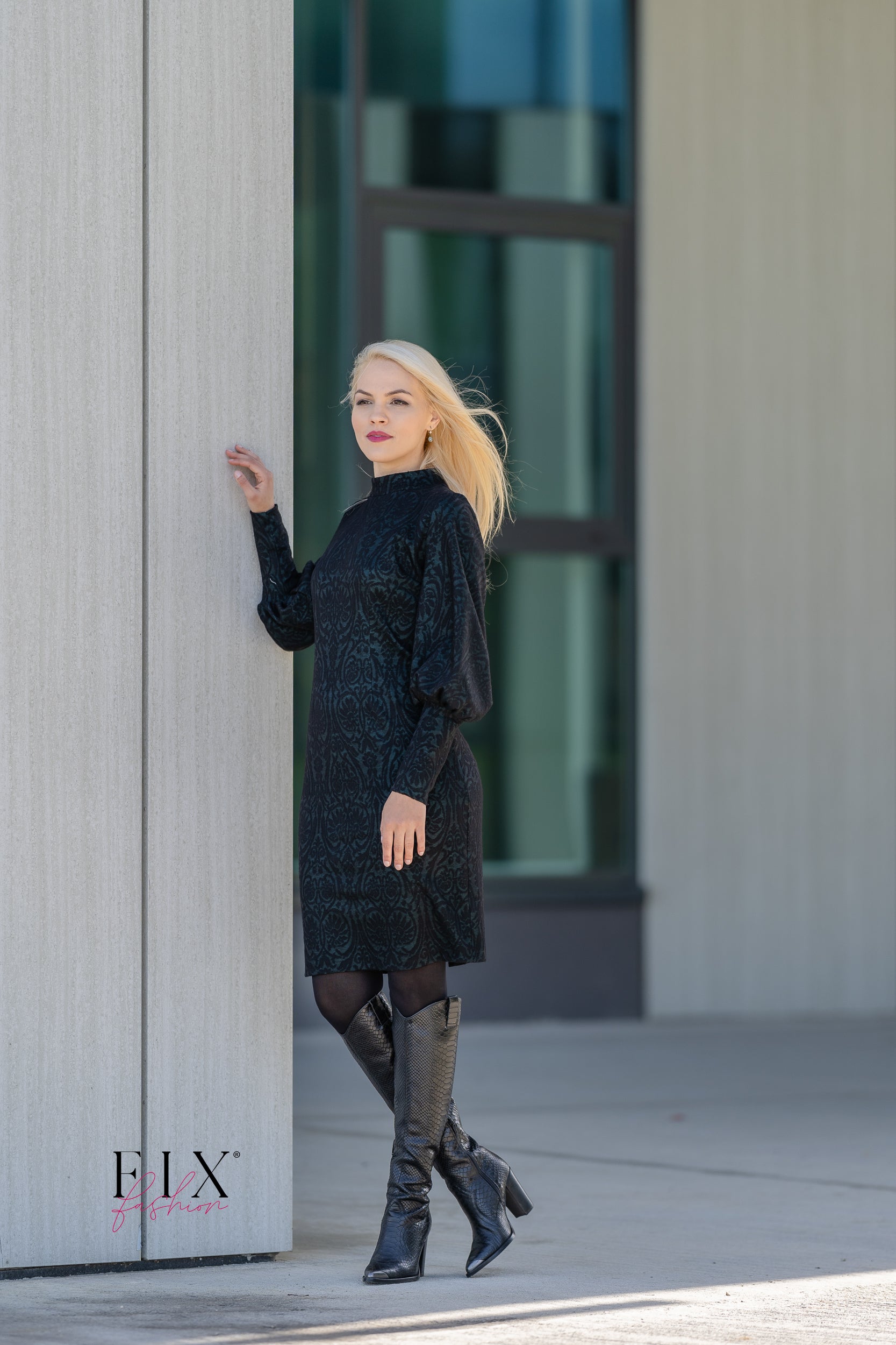 Si in sezonul rece putem fi elegante purtand aceasta rochie conica extrem de confortabila realizata din jerse catifelat si foarte placut la atingere. Jerseul este calitate premium, nu se deformeaza si nu formeaza peeling.